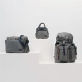 メインコンパートメントとラップトップケースが分離可能なバックパックは折り紙をモチーフにデザインされた「SORMONNE」がベース。ラップトップコンパートメントは最大で13インチのデバイスが収納可能だ。マチが薄いこともあり、バックパックだけではなくクロスボディトートとしても機能する。後に紹介する水沢ダウンジャケット「CHRONICLE」、シェルコート「ACTIVE SHELL COAT」と結合し、装甲ベストスタイルにもなる優れものだ。